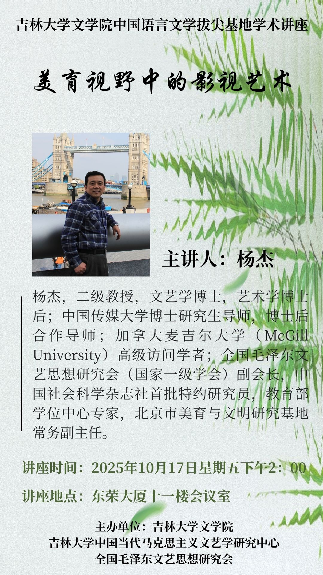 讲座题目:美育视野中的影视艺术
