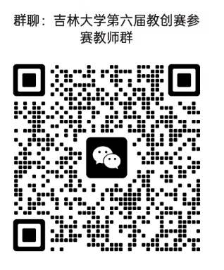 6.报名参赛教师请于1月11日前,扫描下方二维码加入“吉林大学第六届教创赛参赛教师”微信群:
